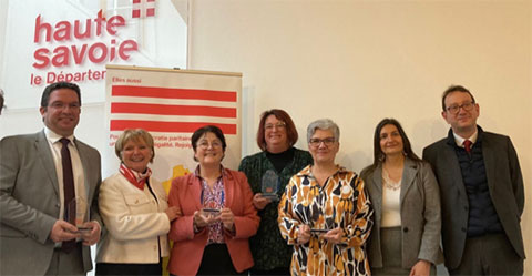 4 décembre 2023 : En Préfecture de Savoie, Reine Lépinay co-Présidente d’Elles aussi remet la Marianne de la Parité des EPCI de Savoie avec la participation : François RAVIER , Préfet de Savoie, Martine BERTHET, Sénatrice et Cédric VIAL Sénateur, co-Présidents du Jury, Evelyne SIMON Ex-Présidente de l’Association des Conseillères et Femmes élues de Savoie, Béatrice SANTAIS, Présidente de la Communauté de Communes Cœur de Savoie, Maire de Montmélian, lauréate, Jean Paul MARGUERON, Président de la Communauté de Communes Cœur de Maurienne Arvan, Premier adjoint à Saint Jean de Maurienne, lauréate, Anne LENFANT Présidente de la Communauté de Communes Cœur de Chartreuse, maire de Entremont-le Vieux, lauréate, Guy DUMOLLARD Président de la Communauté de Communes de Yenne, Maire de Traize, lauréate.